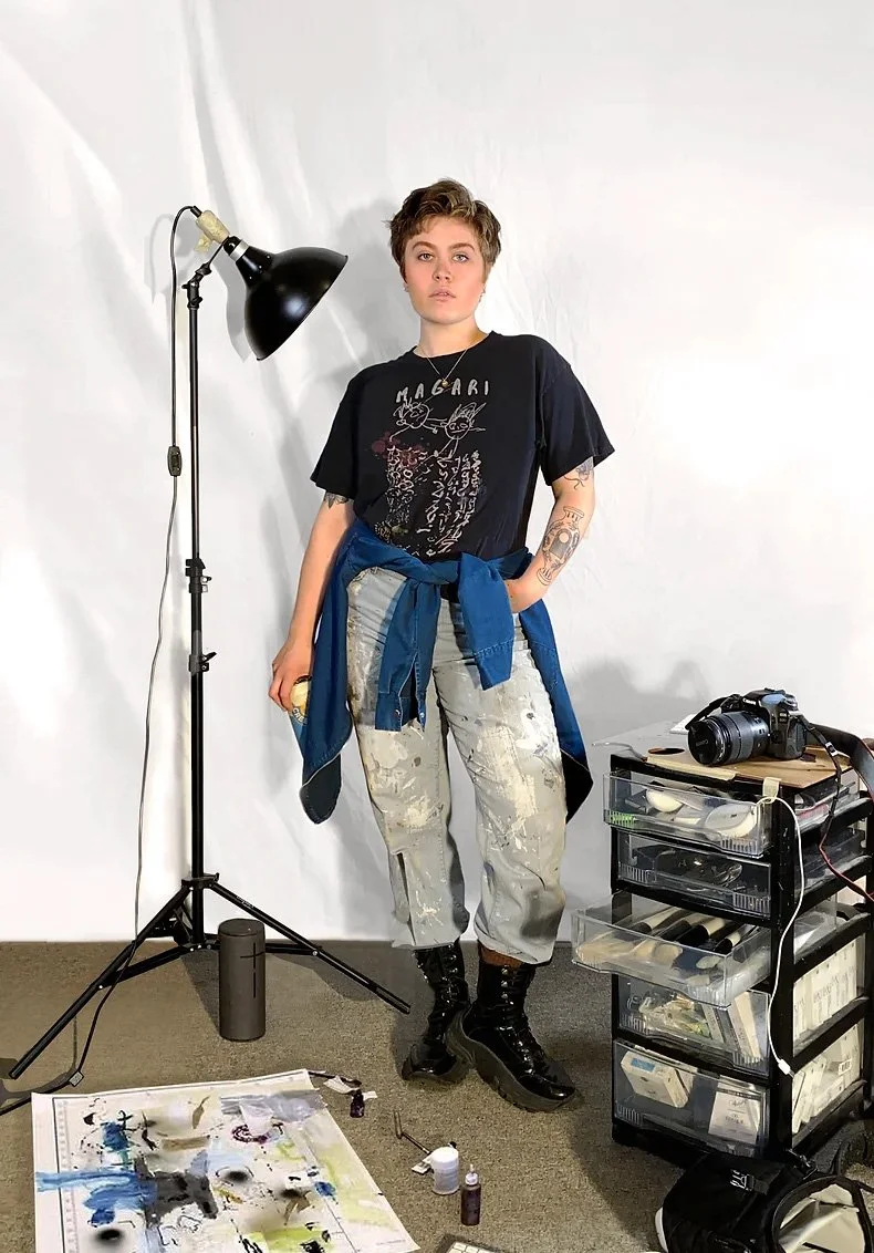 Andie Trépanier is an emerging Canadian painter working primarily in large-scale oil paintings and mixed media. Their practice explores the integration of body, spirit, and the land they live on, investigating the reciprocal dynamics of self and environment.